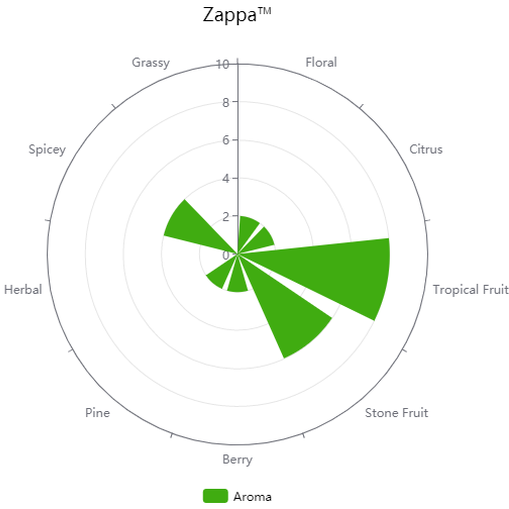 These hops are far out, man! Named after Rock and Roll Hall of Famer, Frank Zappa, this neomexicanus breed was first found in the mountains of New Mexico and later developed by CLS Farms. As wild and free as the music Frank composed, Zappa™ hops are tough to nail down with any singular description. Tropical fruit, pine, and citrus first come to mind, but descriptors such as passionfruit, mint, fresh, purple, savory, impulsive, and fruity pebbles have also been used in an attempt to capture the essence of Zappa™. Use for aroma, whirlpool, and dry hopping additions. Highly recommended for fruit-forward styles like hazy or milkshake IPAs, as well as fruited sours, pale ales, and wild or mixed-fermentation beers.