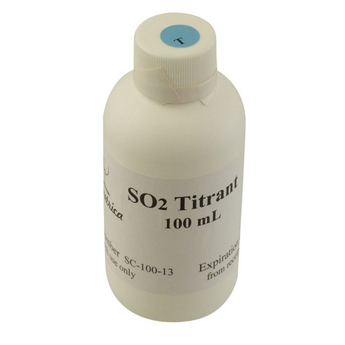 Replenishes the SO2 Titrant provided with the SC-100 and SC-300. Good for up to 50 tests. Guaranteed for 6 months. To avoid cross-contamination with other reagents, use a dedicated pipette to dispense the acid reagent. Store reagents in a dark, cool place with the bottle tightly sealed to maximize shelf life.